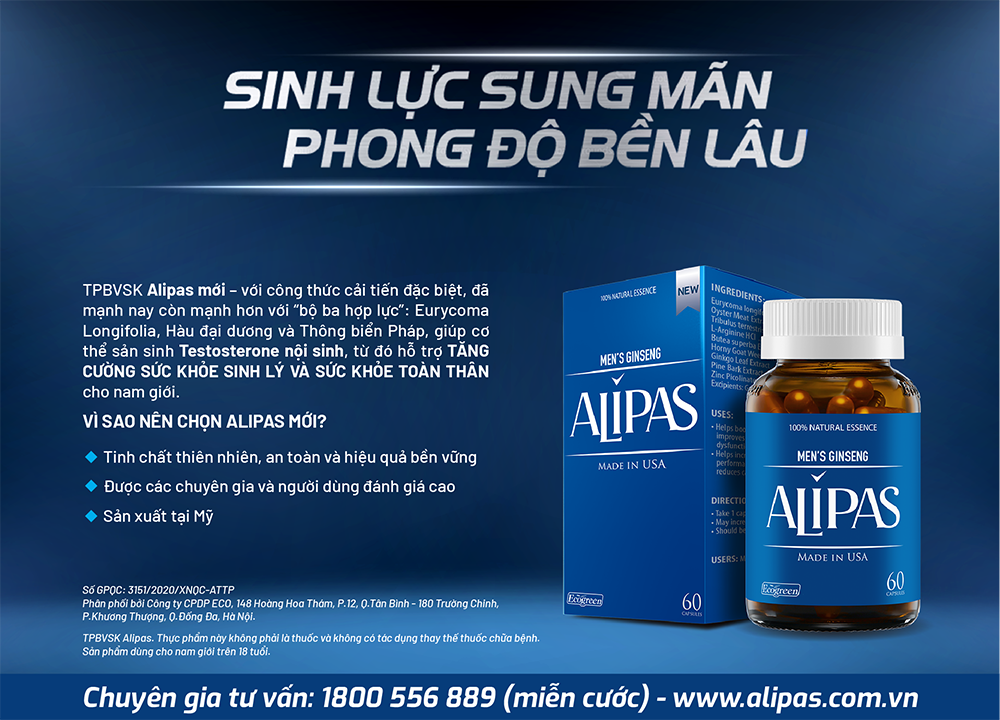 Đây chính là lý do khiến cho Alipas mới luôn là bí quyết của các quý ông suốt 12 năm qua, giúp họ duy trì thể lực sung mãn và phong độ bền lâu.