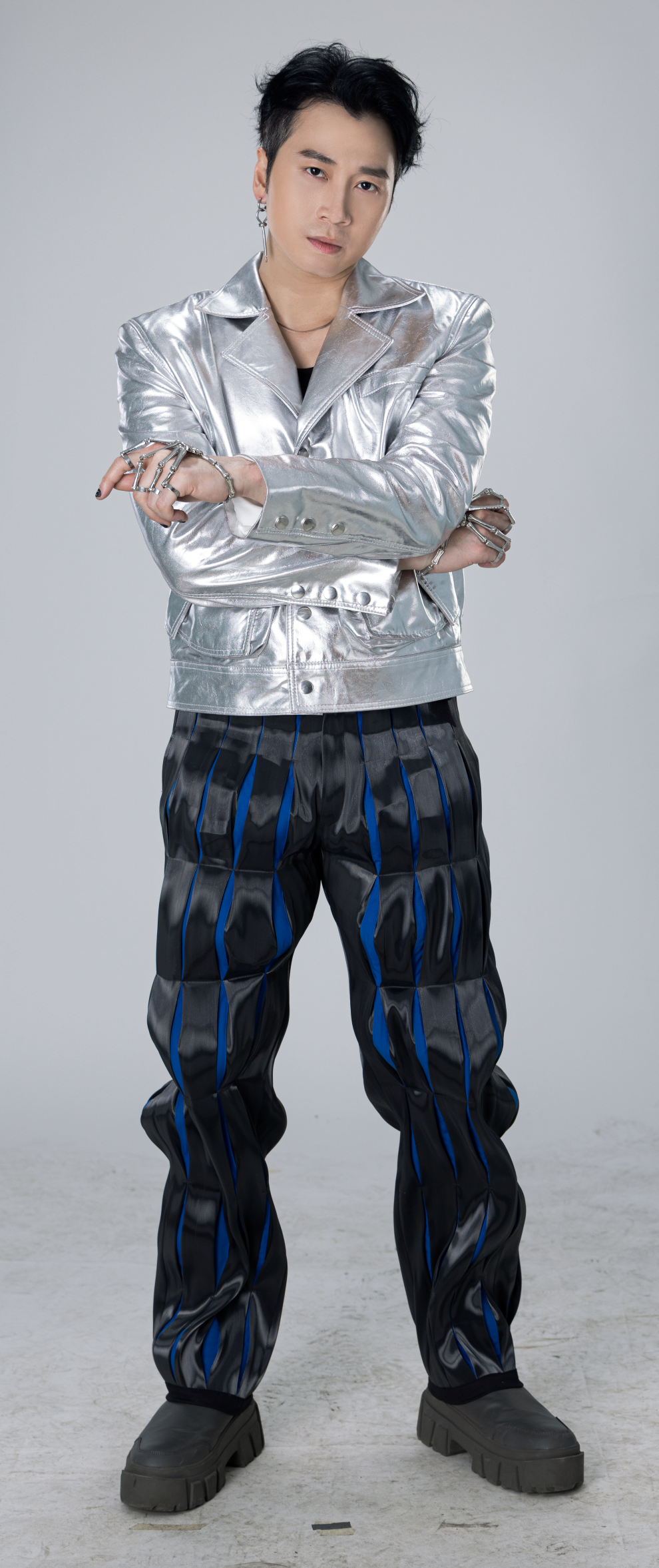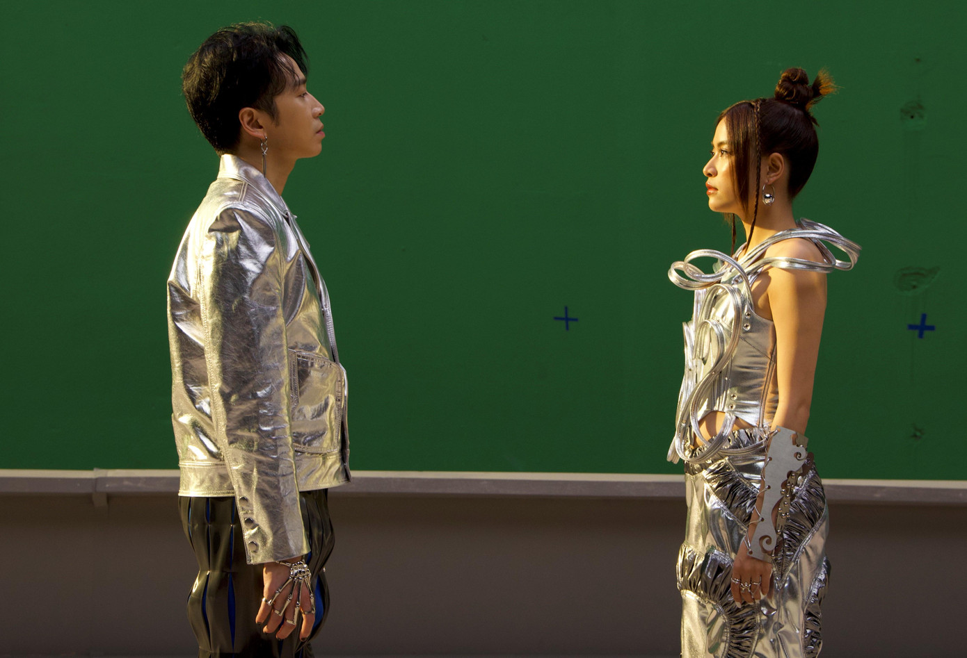 Khi kết hợp với nhau, chúng tạo ra hiệu ứng kích thích thị giác, khiến người xem khó rời mắt. Gam màu bạc trên phục trang nhân vật và thiết kế bối cảnh lấy cảm hứng từ chất liệu thép, cũng là chất liệu quen thuộc làm nên những chiếc Kiềng ba chân.