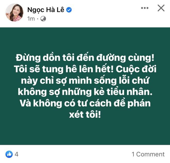 Bởi người vợ thứ ba của Công Lý liên tục đăng tải tâm sự ẩn ý, lúc thì thổ lộ thương Công Lý vì gặp những người nhẫn tâm, lúc thì bức xúc với những người tồi tệ. Mới đây nhất, Ngọc Hà lại phẫn nộ nhắn nhủ ai đó đừng dồn cô đến đường cùng kẻo cô sẽ tung hê tất cả. Ngọc Hà khẳng định những kẻ tiểu nhân ấy không có tư cách để phán xét cô.