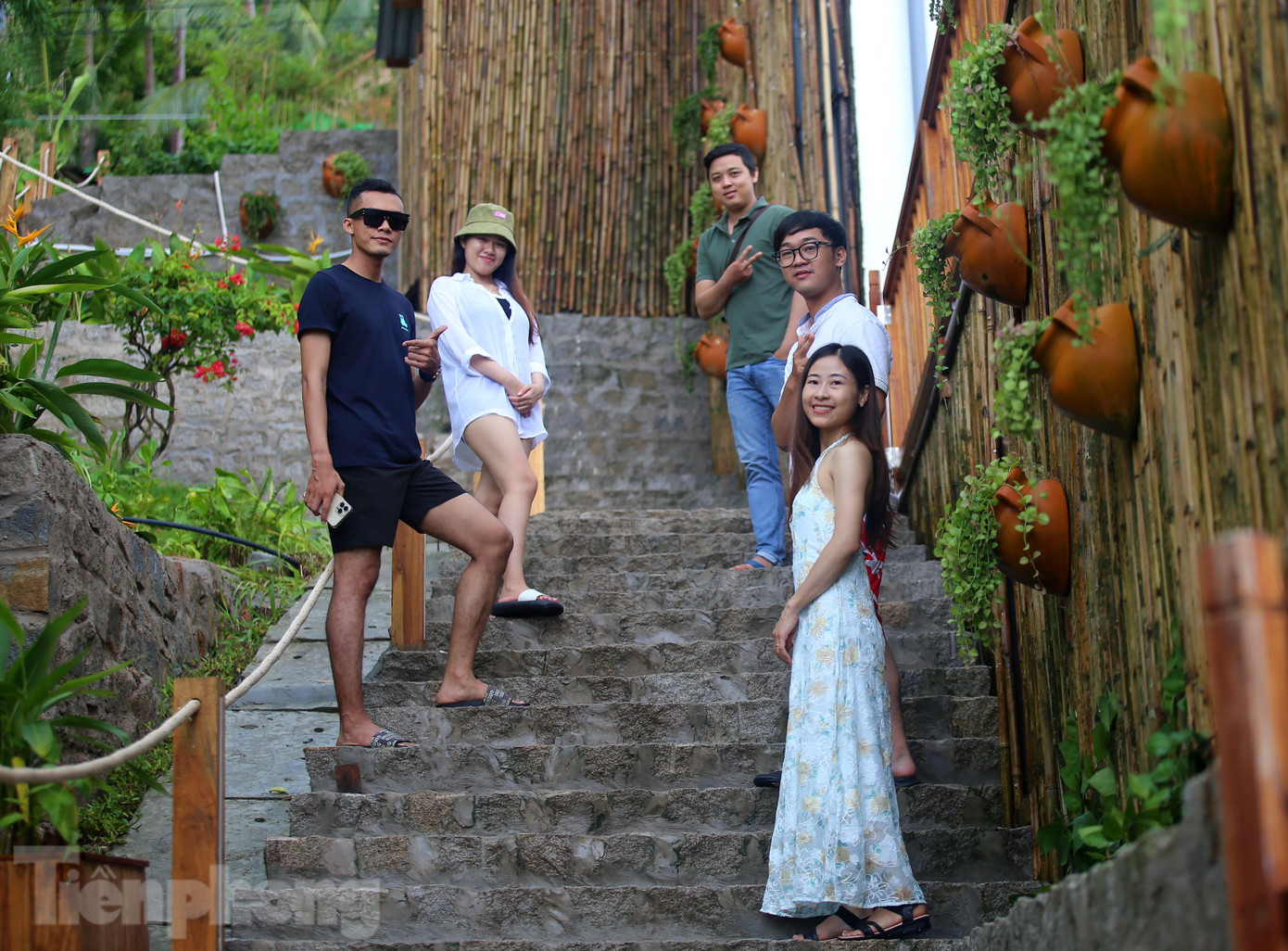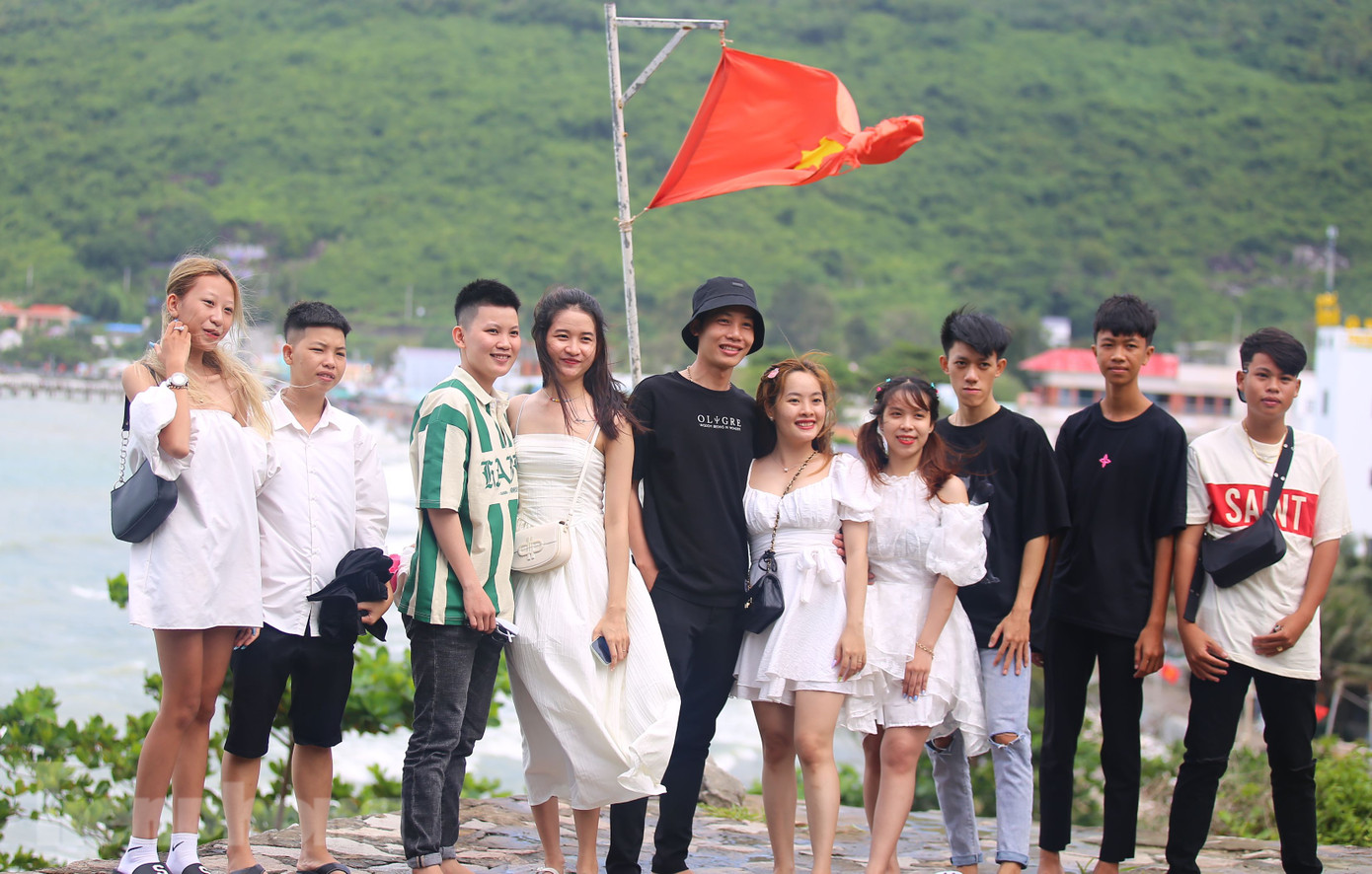 | Du khách tranh thủ thời tiết tốt chụp ảnh 'check in' tại Hòn Sơn. |