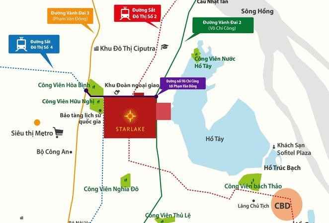 Nằm tại vị trí đắc địa nhất Thủ đô, khu đô thị Starlake được hỗ trợ từ hệ thống giao thông hiện đại, thuận lợi vào lòng phố nhưng lại “náu mình” ở vị trí biệt lập, riêng tư, phù hợp với lối sống của giới thượng lưu và người nước ngoài.