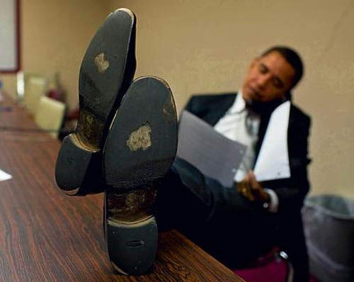 Reggie Love tiết lộ Barack Obama khá trung thành với một đôi giày dự tiệc. Dù đế giày đã bị thủng vài lỗ, khi tham gia chiến dịch tranh cử, Tổng thống Mỹ không khi nào rời xa nó.