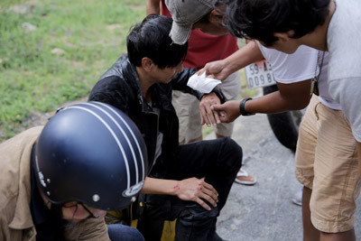 Trong phim, Lý Hải vào vai diễn của Trung - một cascadeur chuyên nghiệp nên đa số là cảnh võ thuật và những màn rượt đuổi nhau. Sau khi bị thương, giọng ca “Liều thuốc cho trái tim” không thể đi lại được. Cả đoàn phải dìu anh ra xe để chuyển ra bệnh viện tỉnh để chụp X-quang, điều trị.