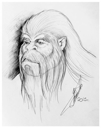 Anh ta có mái tóc dày màu nâu giống của một con gấu, nhưng nó có vẻ mềm hơn rất nhiều. Khuôn mặt và đôi mắt thể hiện được sự biểu cảm. Tôi đặc biệt thích đôi mắt của anh ta”