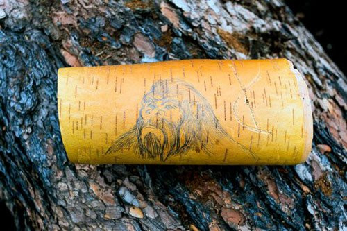 "Tôi không có camera để quay phim hay chụp ảnh, vì vậy tôi quyết định dùng một cây bút chì để vẽ chân dung anh ta lên một tấm vỏ cây có sẵn trong rừng. Sau khi vẽ xong, tôi đã đưa cho anh ta xem. Người Tuyết đã ngắm nghía nó một cách rất cẩn thận, sau đó vẽ một ký hiệu vào bên cạnh bức chân dung. Tôi thực sự không hiểu kí hiệu đó có ý nghĩa gì nhưng tôi hy vọng đó là một biểu tượng của tình bạn" - Andrey vừa kể vừa chỉ cho phóng viên thấy biểu tượng kỳ lạ trên bức chân dung bằng vỏ cây.