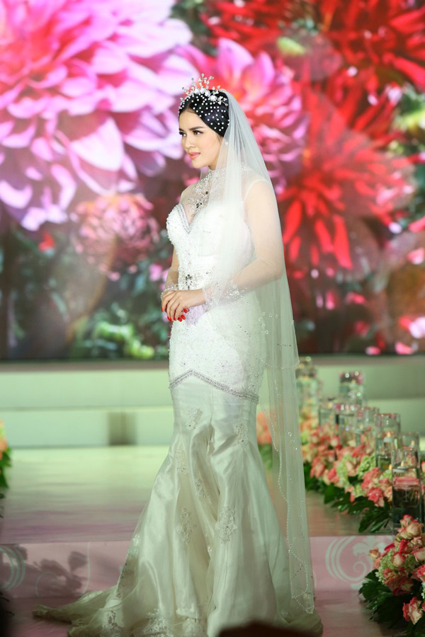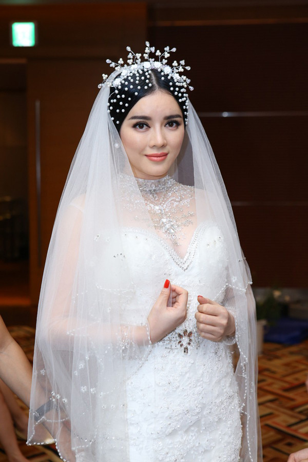 Đây là một trong những lần hiếm hoi Lý Nhã Kỳ mặc váy cưới.