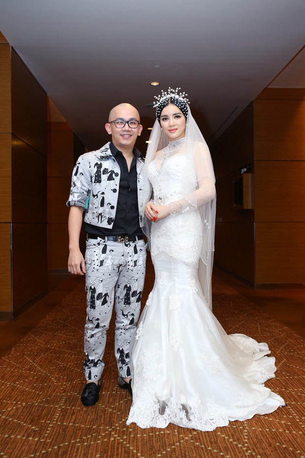 Lý Nhã Kỳ bên nhà thiết kế Minh Lộc.