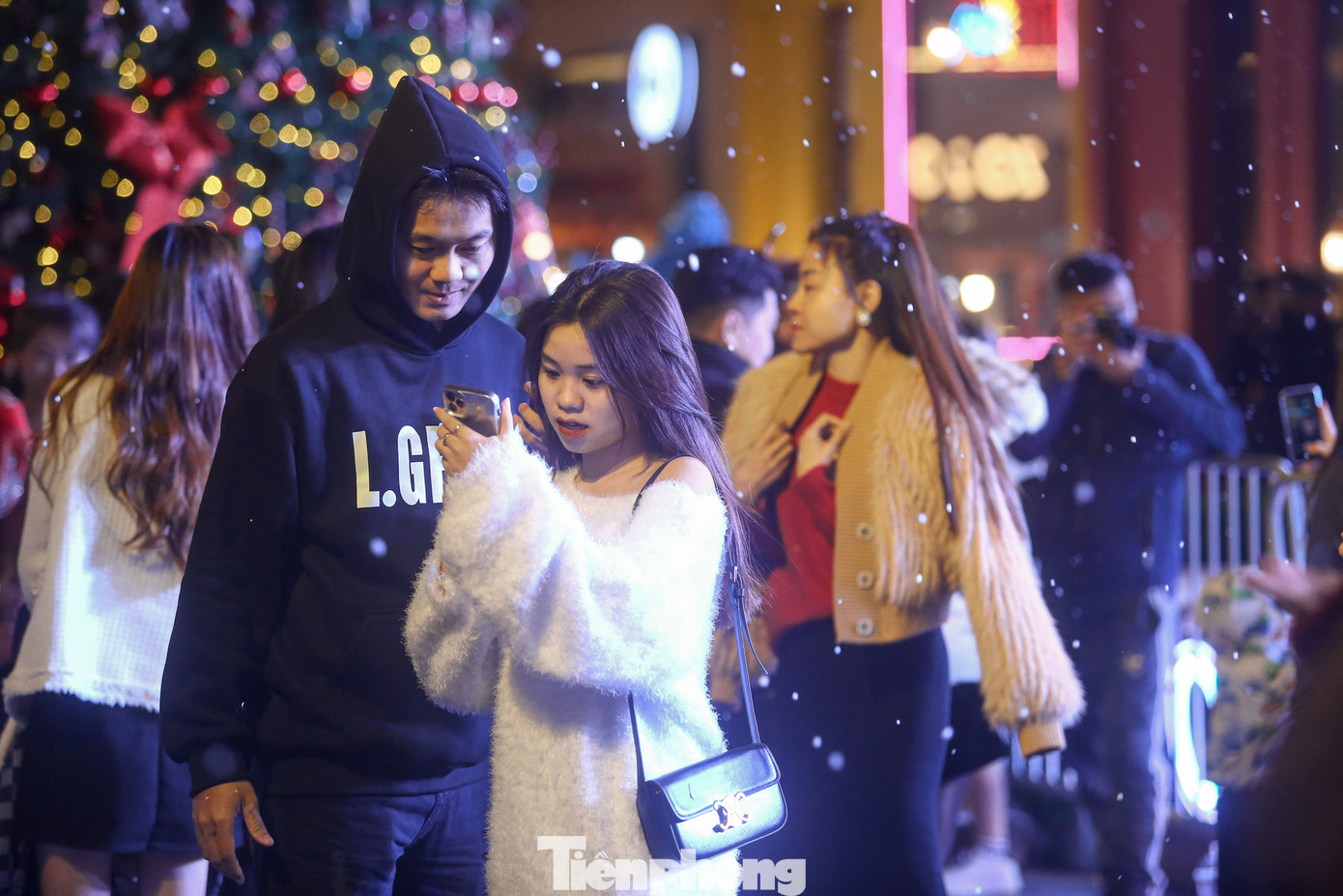 | Phố đi bộ kiểu châu Âu (quận Thanh Xuân, Hà Nội), một địa điểm mới trong mùa Giáng sinh năm nay thu hút đông khách đến trải nghiệm, chụp ảnh. |