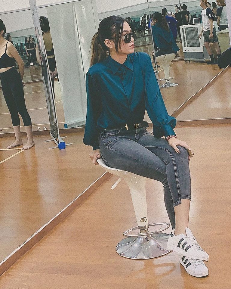 Hoa hậu Lương Thuỳ Linh khoe 'góc nghiêng thần thánh' trên sân thượng của trường đại học của cô.