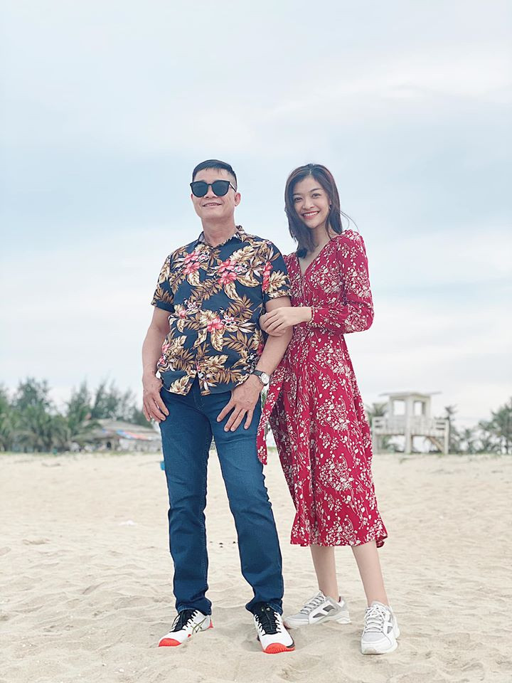 Á hậu Kiều Loan khoe bố trẻ trung khi hai bố con cùng dạo biển ở quê nhà.