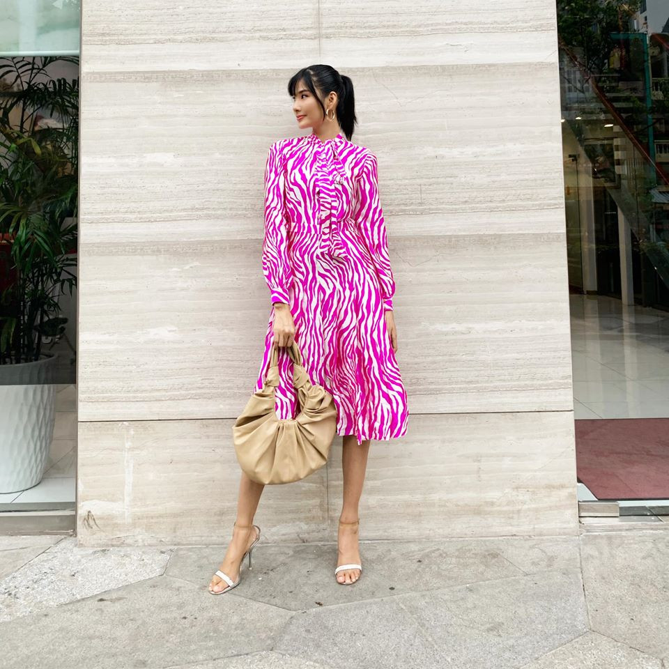 Hoàng Thuỳ diện cả cây màu nổi vô cùng nổi bật khi xuống phố ngày cuối tuần.