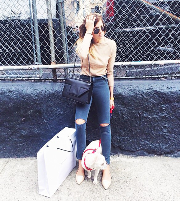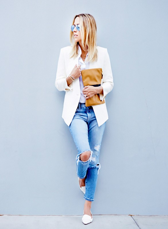 Olivia Palermo thanh lịch với sơ mi trắng đi kèm quần Jeans rách