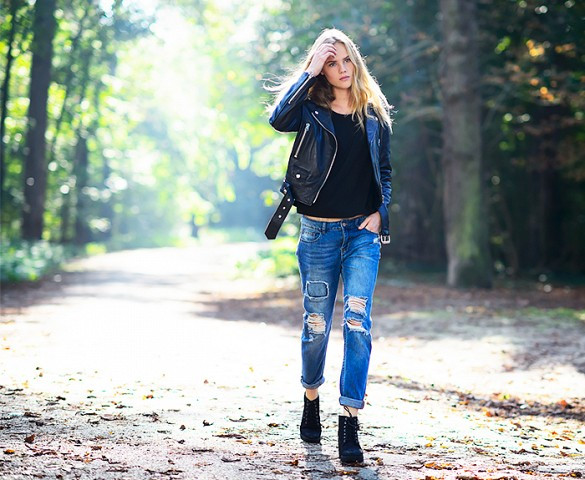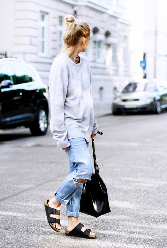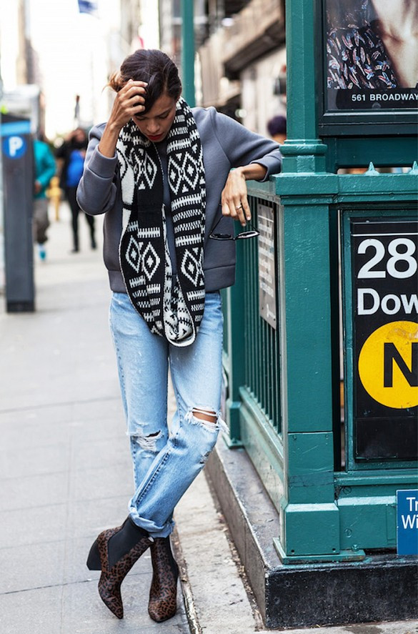 Một cô nàng bụi phủi với áo rộng và quần Jeans rách "boyfriend".
