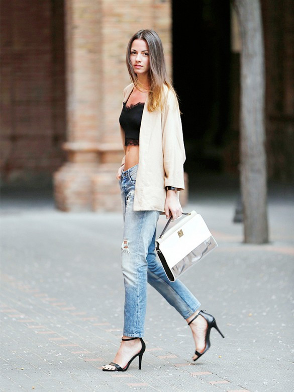 Áo crop top với quần Jeans boyfriend cho vẻ đẹp năng động.