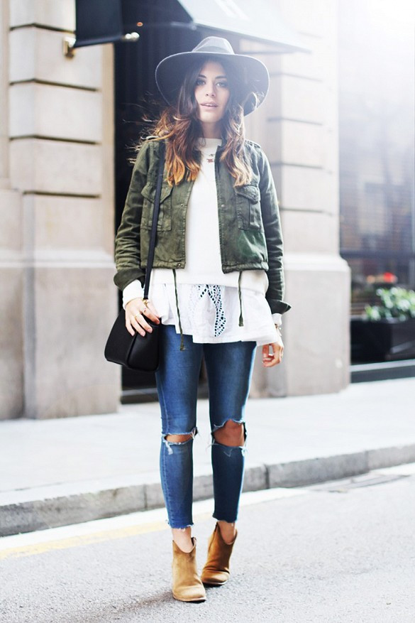 Áo "bộ đội" và quần Jeans rách - Sành điệu và trẻ trung.