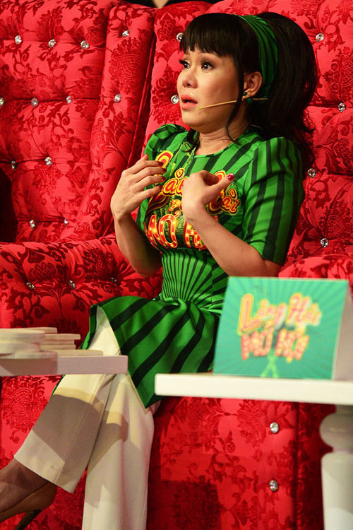 Trong chương trình “Làng hài mở hội” tối 4/5, Việt Hương xúc động nghẹn ngào trước tiết mục của một nhóm thí sinh.