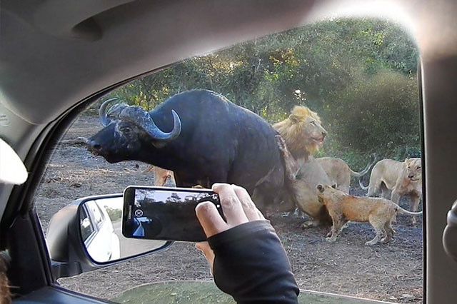 Trong chuyến tham quan khu vực H1-3 thuộc Vườn quốc gia Kruger ở Nam Phi, anh Ahmed Ismail cùng rất nhiều du khách khác đã may mắn trông thấy một cuộc săn trâu rừng của bầy sư tử.