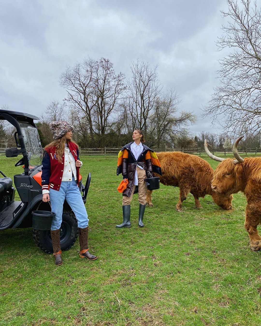 Hai mỹ nhân chân dài chụp bộ ảnh đồng quê vẫn rất thời trang cho tạp chí Vogue ngay tại nông trại ở nhà trong thời gian tự cách ly tránh dịch.