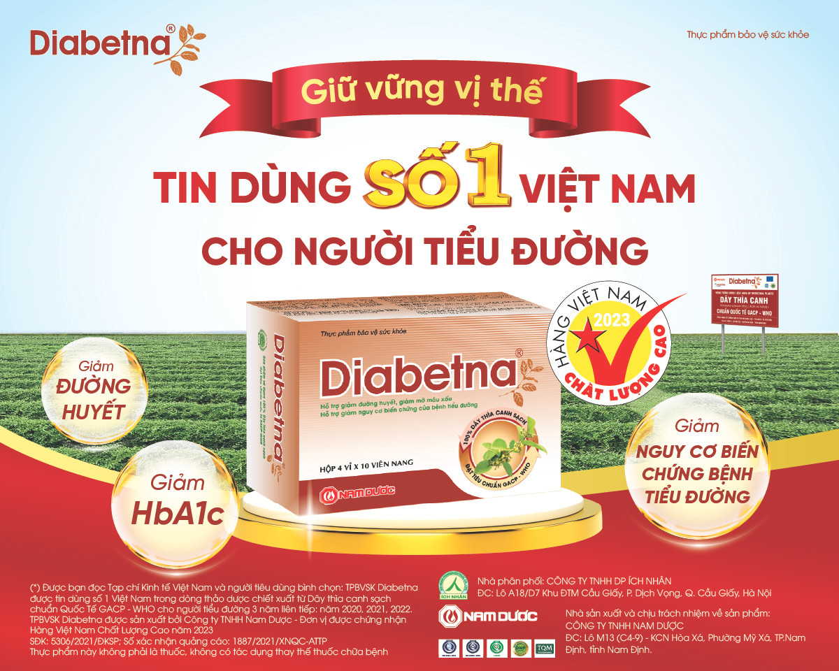 “Tôi tin tưởng lựa chọn TPBVSK Diabetna vì thấy sản phẩm đã được nghiên cứu bài bản trong nước và quốc tế; được kiểm soát chặt chẽ từ đầu vào với vùng nguyên liệu Dây thìa canh sạch chuẩn quốc tế GACP-WHO và được bào chế tại nhà máy Nam Dược đạt chuẩn GMP - WHO, Top 5 công ty Đông Dược Việt Nam Uy tín năm 2022; được nhiều chuyên gia khuyên dùng và đặc biệt,TPBVSK Diabetna đã 3 năm liên tiếp được bình chọn là “Sản phẩm được tin dùng số 1 Việt Nam cho người tiểu đường” - cô Hạnh chia sẻ lý do lựa chọn sử dụng TPBVSK Diabetna