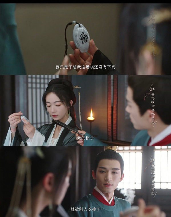 Tiêu Hoành (Vương Tinh Việt) biết A Ly "có biến", lấy cớ mời cơm để gặp nàng. Tiết Phương Phi cũng không từ chối, nàng tới dùng bữa, rồi muốn nghỉ ngơi một lát ở chỗ Túc quốc công. Tiêu Hoành ngồi ngắm nhìn "con cờ" của chàng say ngủ, xót xa khi phát hiện vết thương trên cổ tay nàng. Khi A Ly tỉnh lại, Tiêu Hoành đưa cho nàng một chiếc còi, để khi gặp chuyện thổi nó, sẽ có người thay chàng tới cứu nàng.