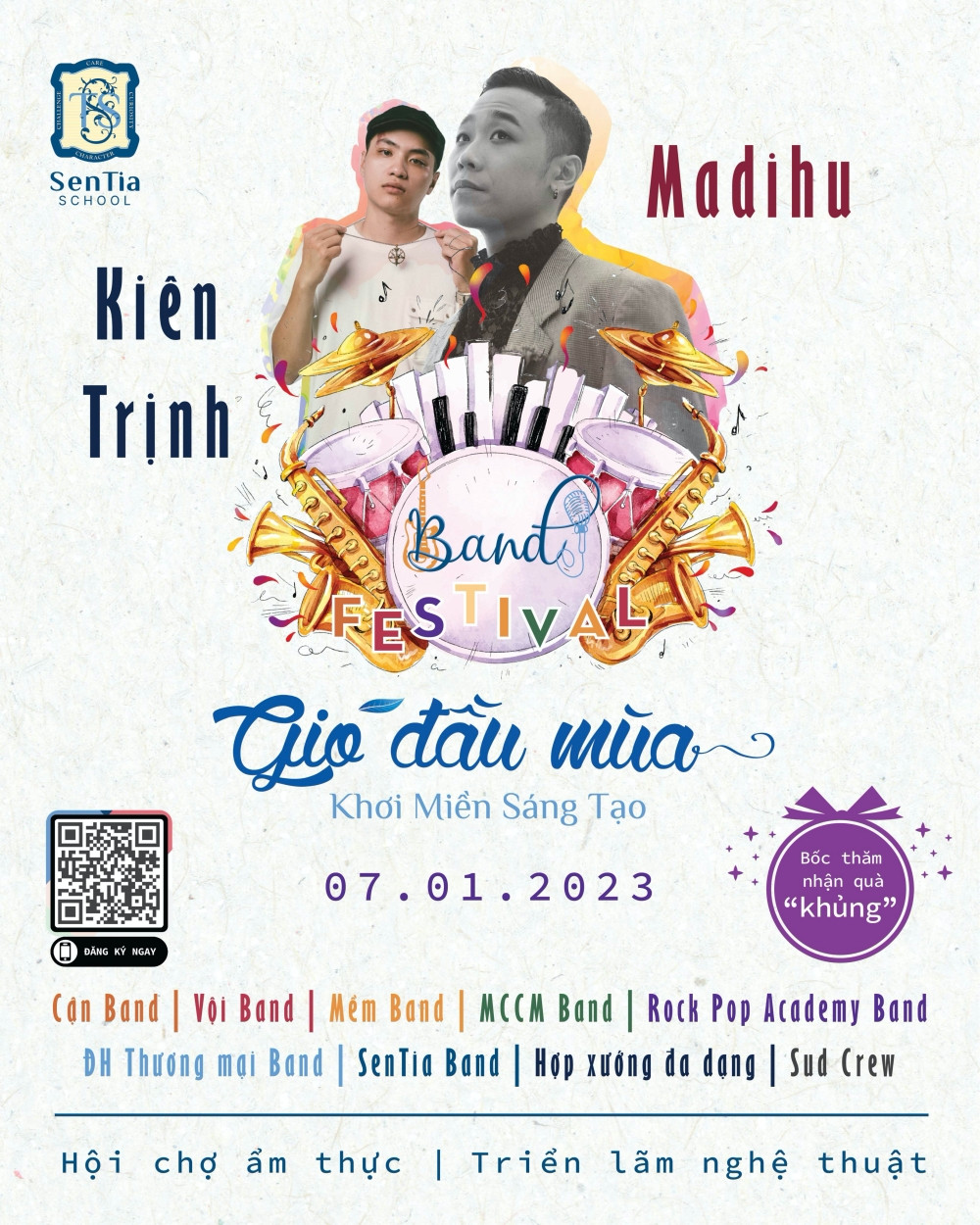 Tiếp nối thành công của các hoạt động giao lưu biểu diễn âm nhạc giữa các trường trung học tại Gió Đầu Mùa, các hoạt động âm nhạc theo chủ đề Band Festival năm nay sẽ mang đúng nghĩa một “bữa tiệc” âm nhạc đa sắc màu. Madihu và Kiên Trịnh là 2 ca sĩ khách mời sẽ góp mặt trong sự kiện.