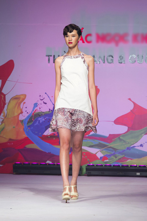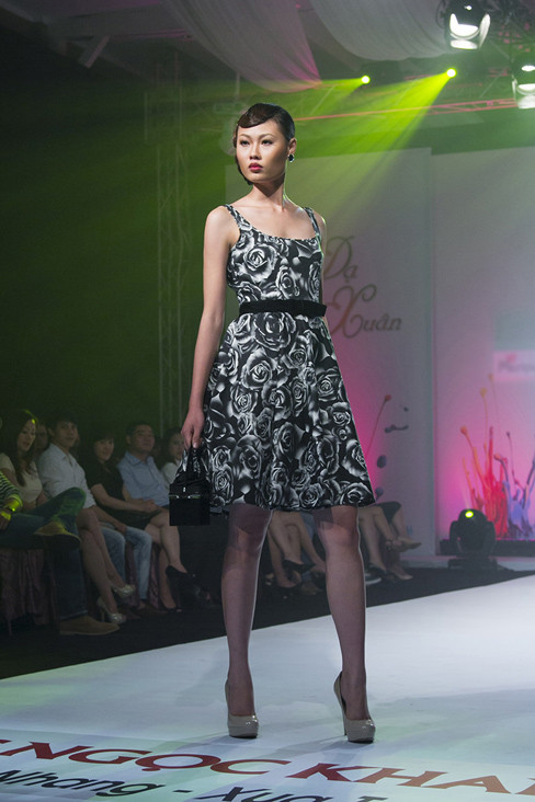 Bên cạnh những tà áo dài của nhà thiết kế Thuận Việt, các người mẫu còn khoe vẻ trẻ trung năng động trong trang phục dạo phố mùa xuân và những trang phục dạ hội rất sang trọng, quý phái.
