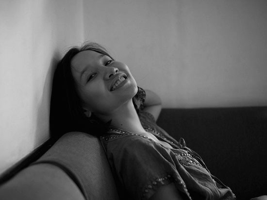 (Cười) Là phụ nữ ai cũng sợ thời gian mà. Nói đùa thế thôi nhưng Khôi muốn thỉnh thoảng thay đổi cũng vui, thấy mình trong gương cũng lạ. Tóc ngắn tiện lợi, vẫn xinh tươi và mới mẻ. Những tấm hình này là do nhạc sĩ Quốc Bảo chụp Khôi ở quán cafe. Nhìn cũng đáng yêu phải không!