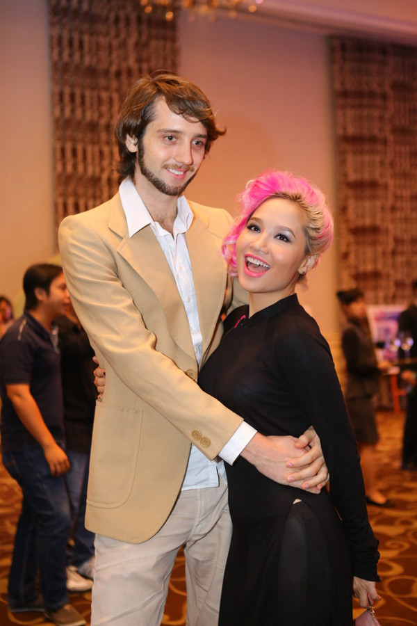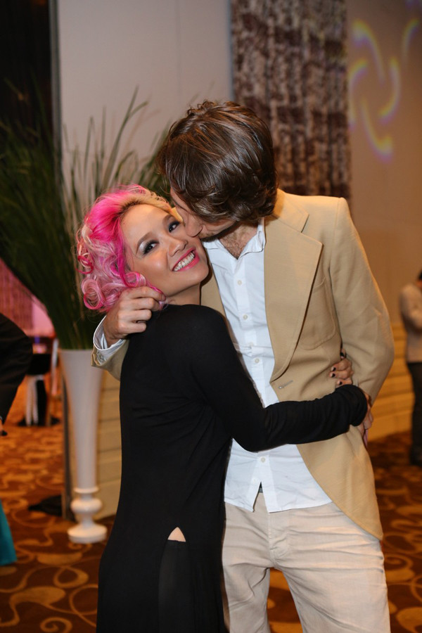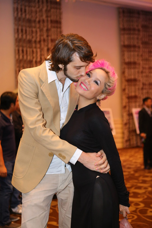 Mặc kệ những ánh mắt hiếu kỳ, soi mói mái tóc của người đẹp, Mai Khôi vẫn tình tứ bên chồng Tây.