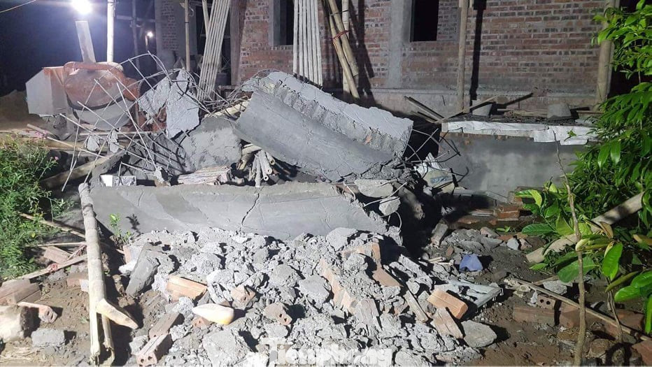 Vào lúc 17 giờ chiều cùng ngày, khi 4 người trong tốp thợ đang thi công lợp ngói phần vỉ ruồi (phần rìa của ngôi nhà mái Thái) trên mái tầng 2 của căn nhà (cách mặt đất khoảng 8 mét) thì bỗng nhiên vỉ ruồi bị gãy, sập làm cả 4 thợ xây rơi xuống đất.