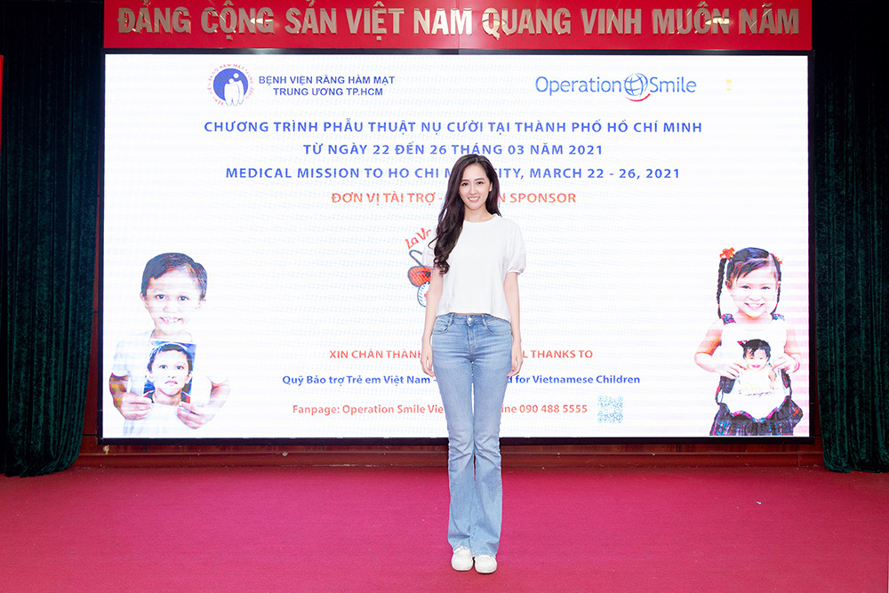 Hoa hậu Mai Phương Thuý xuất hiện trong sự kiện với vai trò là đại sứ thiện chí của quỹ từ thiện Operation Smile trong suốt 14 năm qua. Cô diện trang phục với quần jeans và áo phông trắng giản dị nhưng vẫn xinh đẹp rạng rỡ.
