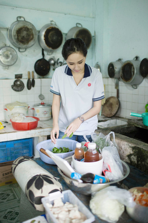 Mai Phương Thúy giản dị nấu ăn cho các nghệ sĩ già