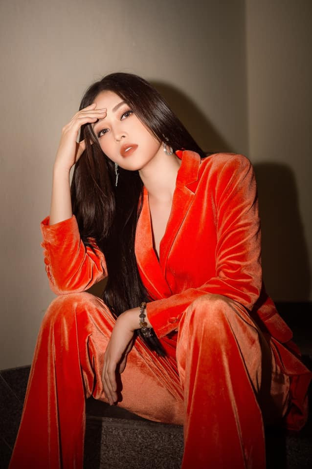 Á hậu Phương Nga cá tính và cực 'ngầu' trong bộ vest tông màu đỏ nổi bật.