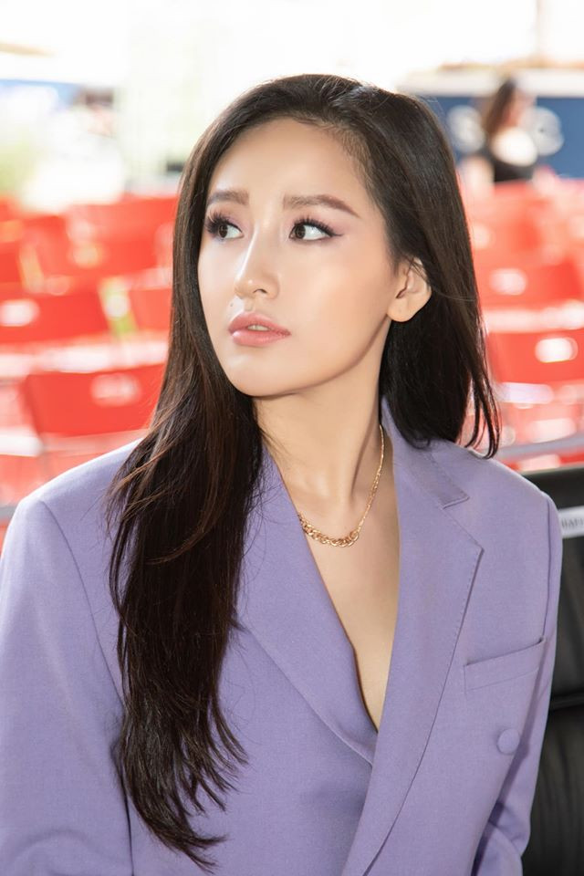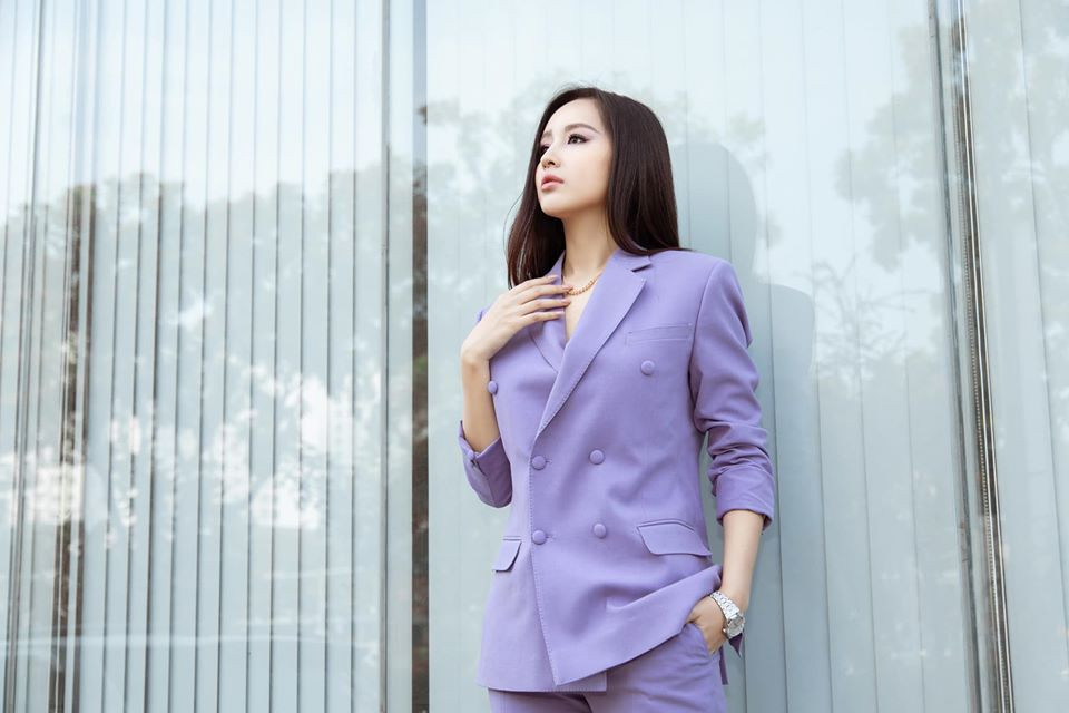 Vốn quen thuộc với những bộ váy áo lộng lẫy, cắt xẻ táo bạo, Mai Phương Thuý bất ngờ 'đổi gió' với phong cách kín đáo, thanh lịch khi diện bộ vest màu tím.