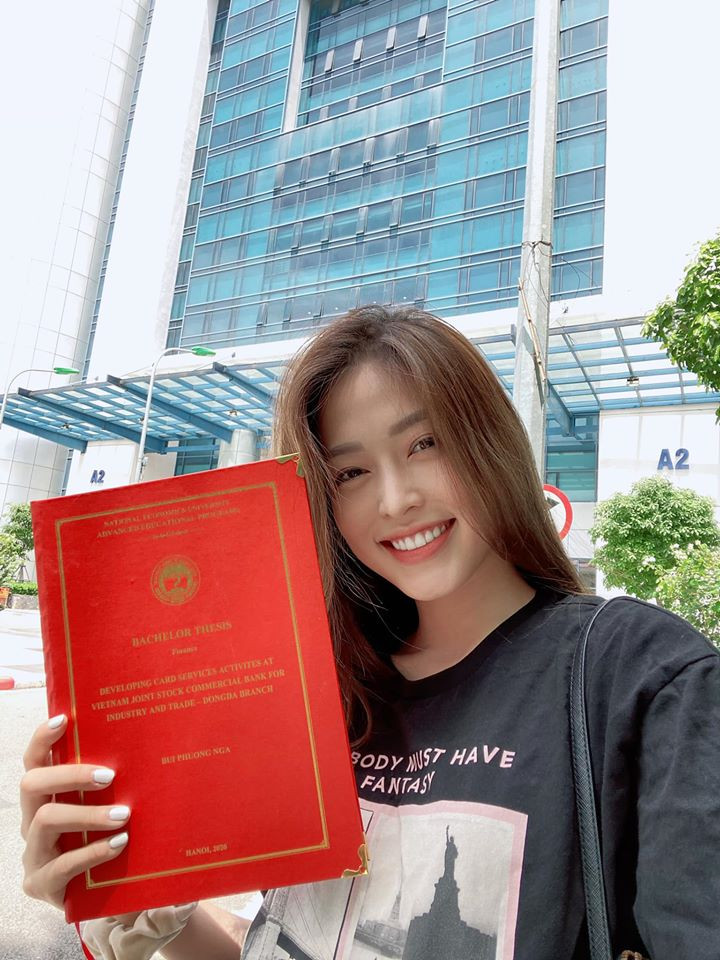 Á hậu Phương Nga vui mừng vì sắp tốt nghiệp Đại học Kinh tế Quốc dân.