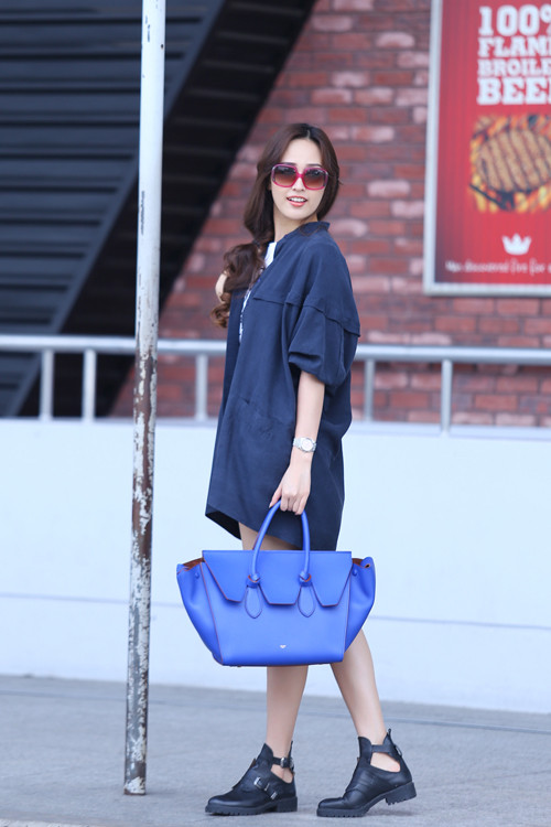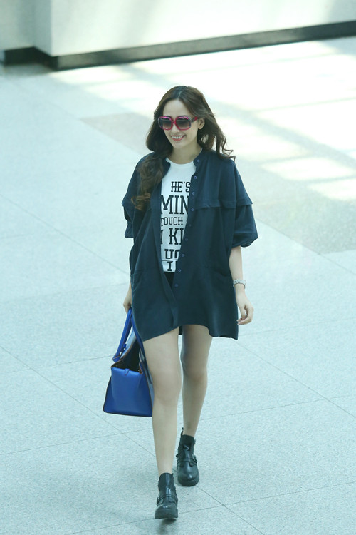 Xách túi hàng hiệu đắt tiền, Mai Phương Thúy thu hút nhiều ánh nhìn khi lên đường sang Hong Kong xem thời trang. Hoa hậu vẫn trung thành với phong cách trẻ trung ngoài đời thường khi diện áo thun, quần short vàáo khoác mỏng.