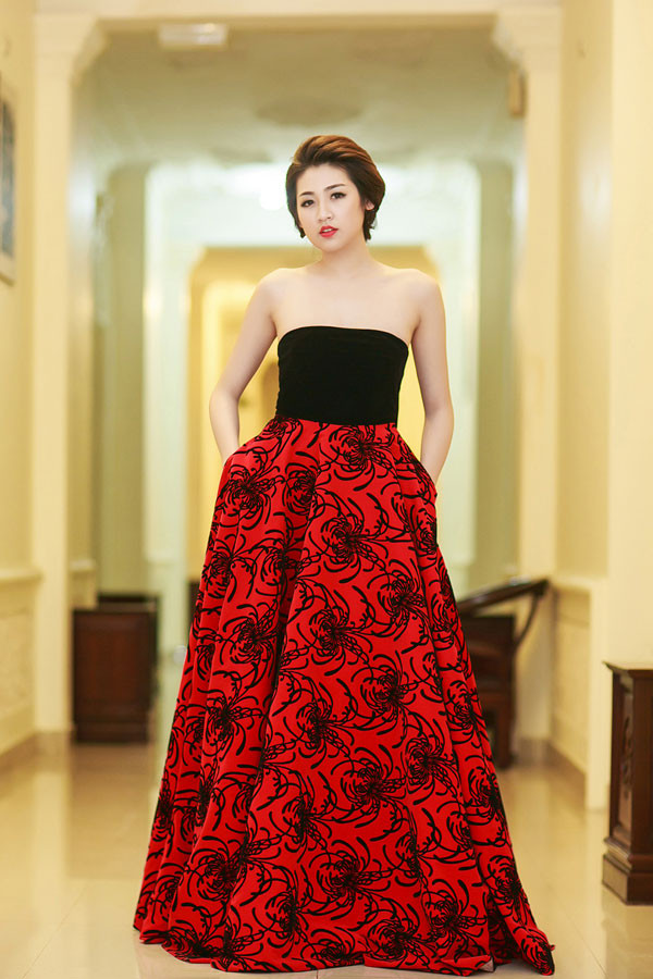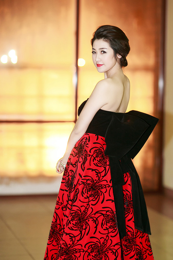 Chiếc váy có thiết kế ở đằng sau thân váy là một chiếc nơ cơ lớn, tăng thêm vẻ lộng lẫy cho Tú Anh.