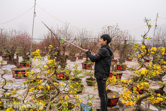 Anh Nguyễn Thế Quỳnh, chủ của hàng trăm cây mai vàng cho biết, nhiệt độ ở Hà Nội với Bình định chênh nhau khoảng 10 độ vì vậy khi ra Thủ đô, mai lâu ra hoa hơn.