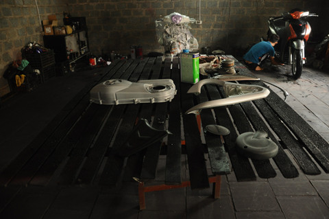 Từ nhiều tháng nay, nhiều người dân ngạc nhiên khi thấy giới chơi xe máy cao cấp SH thường xuyên đổ về căn xưởng của anh Nguyễn Công Trình tại xã Song Phương (Hoài Đức, Hà Nội).
