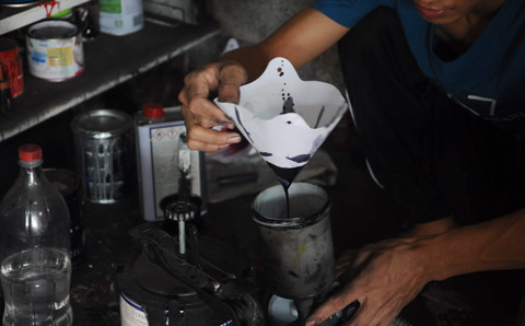 Theo Trình chia sẻ, sở dĩ xưởng đông khách vì chất lượng sơn anh dùng là sơn cao cấp dùng cho ô tô nên không bị bong và khi lên màu cũng đẹp hơn. Tuy nhiên, làm việc trong xưởng sơn cũng rất độc hại, Trình phải thường xuyên đeo mặt nạ.