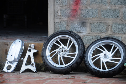 Các chi tiết của xe trước khi sơn còn được đánh bằng giấy ráp để tạo độ bám.