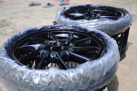 Vành xe được phơi khô sau khi sơn.