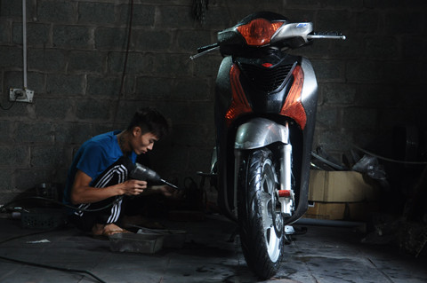 Sau một thời gian làm nghề sơn ô tô ở trung tâm Hà Nội, Nguyễn Công Trình (26 tuổi) về quê mở xưởng chuyên sơn màu cho các dòng xe máy. Đặc biệt là loại xe SH, hàng trăm chiếc xe máy tới đây để được "làm đẹp".