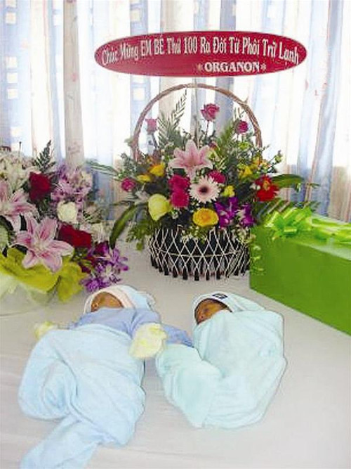 Em bé thứ 100 và 101 chào đời nhờ TTTON tại BV Phụ sản Từ Dũ chính là hai em bé được sinh ra từ trứng của người hiến tặng. Sản phụ là chị V. đã đến điều trị tại khoa Hiếm muộn, vào năm 45 tuổi, sau 16 năm dài mong mỏi có con. Chị được các bác sỹ chỉ định làm TTTON - xin trứng do lớn tuổi.