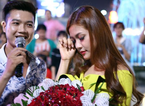 Khi Thu Hằng vừa bước xuống taxi, tiếng nhạc từ hai chiếc loa thùng vang lên náo động cả góc phố đông đúc. Quang Anh tiến lại phía cô cùng bó hồng đỏ và cất tiếng hát ngọt ngào. Sau phút ngượng ngùng, tân hoa khôi sinh viên bật khóc đón nhận bó hoa và chiếc nhẫn đính hôn của bạn trai.
