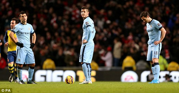 Các cầu thủ Man City vẫn đang tỏ ra bế tắc trong việc tìm đường vào khung thành Arsenal.