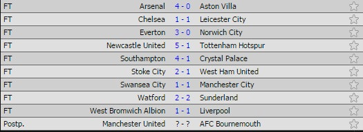 Với Southampton, chiến thắng 4-1 trước Crystal Palace giúp họ tạm chen chân vào vị trí thứ 5 (giành vé dự Europa League). Tuy nhiên, nếu ở trận đá bù, M.U thắng hoặc hòa AFC Bournemouth, khi ấy Southampton sẽ bị đẩy xuống vị trí thứ 6. Ở một trận đấu đáng chú ý khác, chủ nhà Chelsea đã bị ĐKVĐ Leicester City cầm hòa với tỷ số 1-1.