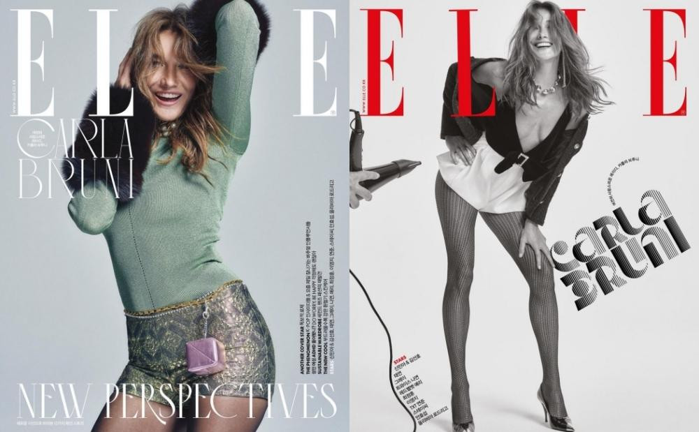 Cùng với Rosé, bìa ELLE Hàn số tháng 9 còn có 2 phiên bản của siêu mẫu, ca sĩ người Ý Carla Bruni, cũng do nhãn hàng Saint Laurent đẩy bìa. Mặc dù đã 53 tuổi nhưng nhan sắc và thân hình của Carla vẫn cực kỳ trẻ trung.