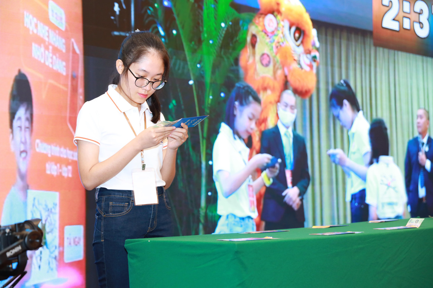 | Cặp đôi nhí tài năng Linh Anh và Diệu Anh nhanh chóng hoàn thành thử thách ghi nhớ số seri của chương trình. |