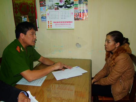 | Cơ quan Công an đọc lệnh bắt khẩn cấp Trương Thị Thưa. |