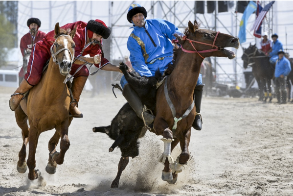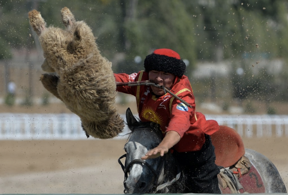 Kok Boru là cuộc đua ngựa truyền thống của người Kygryztan. Kok Boru có nghĩa là sói xám. Từ xa xưa, con người luôn bị các động vật hung dữ tấn công. Những người đàn ông, trụ cột của gia đình, cùng nhau đi săn thú rừng. Sau khi bắt sống được con mồi, họ vui đùa ném cho nhau đầy thích thú. Trò chơi này hiện nay đòi hỏi các đội chơi ném cừu hoặc dê cho đối thủ của mình trên sân. Ảnh: Washington Post